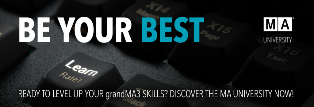 ¿Quieres aprender más sobre grandMA3? ¿Utilizas productos MA y necesitas información detallada sobre el software? ¿Quieres obtener consejos y trucos para tu trabajo diario? ¡Estás en el lugar correcto! La Universidad MA con una amplia gama de opciones de formación, ¡tan individual como tú y tu creatividad!